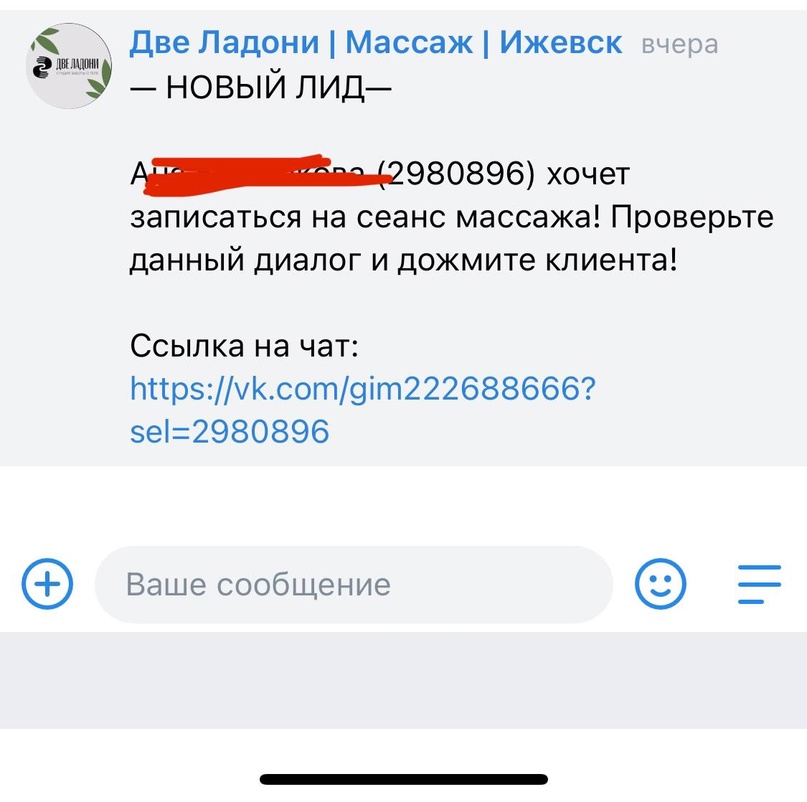 Одногруппница порекомендовала меня как хорошего таргетолога. Задача от Заказчика: «Раскачать» группу массажного салона. Отмечу, что у Заказчика в группе были сообщения, но не было настроено ни чат-бота, ни воронки трафика. Не было никаких приветственных бонусов.